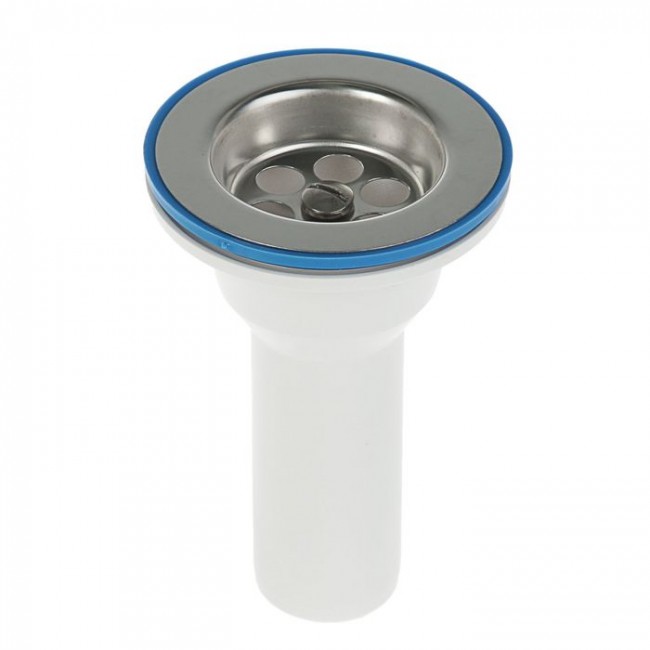 Литой пластиковый выпуск с нержавеющей чашкой д.70мм и выходным отверстием д.32мм для моек со сливом до д.52мм.