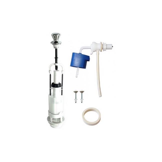 Количество в упаковке: 25шт. Комплект для керамических сливных бачков с выпускным клапаном ― тяга вверх и хромированной или пластиковой ручкой для спуска воды, боковым клапаном подачи воды, креплением и прокладкой между бачком к унитазом. Арматура регулируется по высоте. Наполнение бачка регулируется поплавком наполнительного клапана.