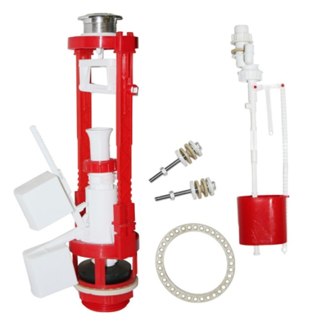 Арматура кнопочная 2-х уровневая АС-12.2M стандарт с клапаном универсальным нижней подводки воды. Данная арматура качественно отличается от штоковых арматур, при этом она включает в себя лучшие их качества. Арматура универсальная устанавливается и на "средние" бачки (высота до крышки бачка от 310 мм до 390 мм), и на "высокие" (высота до крышки бачка 420 мм).