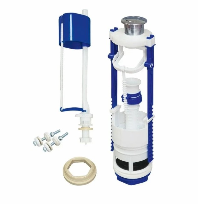 Арматура кнопочная АС-17.1M с клапаном универсальным нижней подводки воды. Данная арматура качественно отличается от штоковых арматур, при этом она включает в себя лучшие их качества. Арматура универсальная устанавливается и на "средние" бачки (высота до крышки бачка от 310 мм до 390 мм), и на "высокие" (высота до крышки бачка 420 мм).
