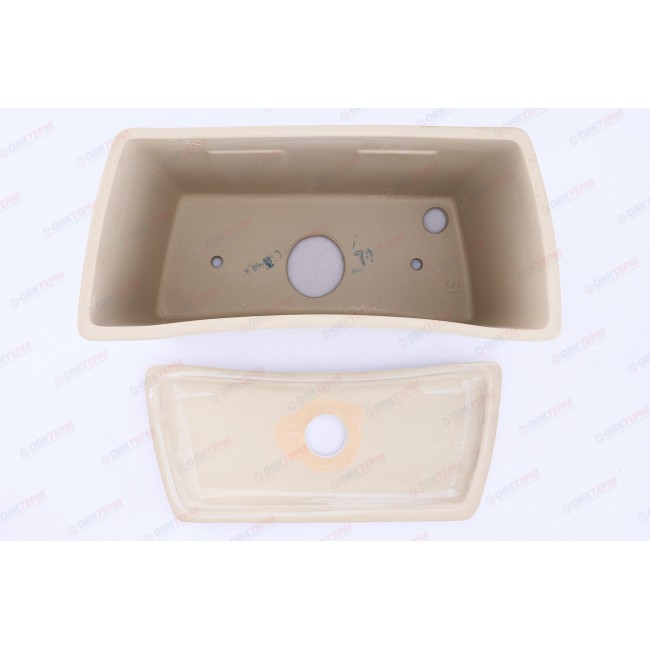 Изготовлен из высококачественного фарфора. Бачок с отверстием в крышке под кнопочную арматуру, используется для комплектации унитаза.