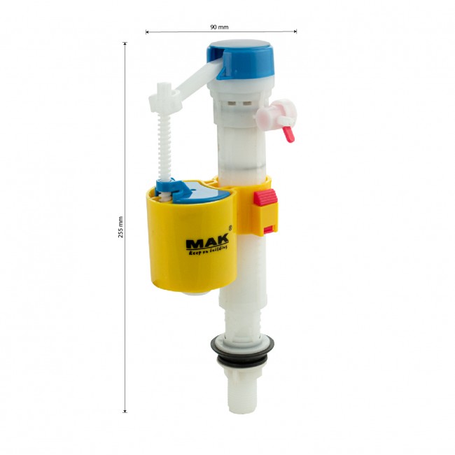 Клапан впускной с нижней подводкой, из высокопрочного пластика АБС. Устройство для монтажа в смывном бачке унитаза отличается пониженным уровнем шума. Может устанавливаться в любом типе бачка с нижней подводкой для подачи воды. Габаритные размеры: высота 255 мм, ширина 90 мм, подключение 1/2, наружняя резьба. Вес - 0,300 кг, объём - 0,00280 м3.