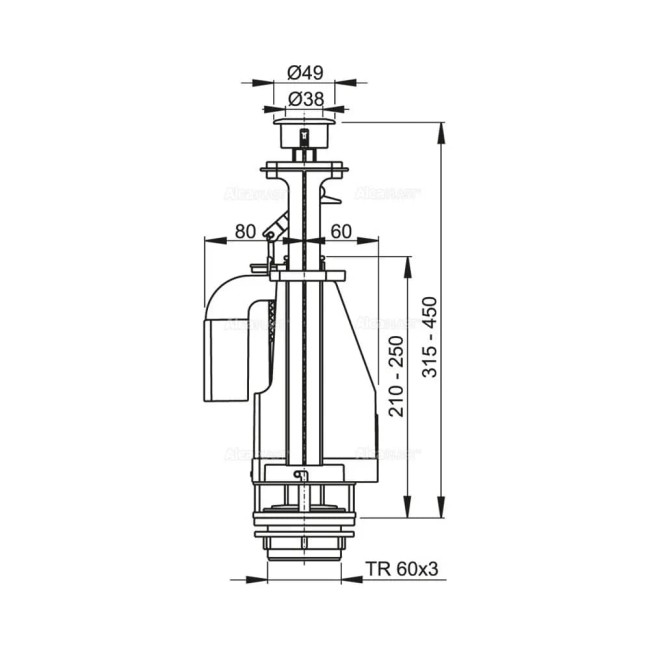 Сливной механизм для унитаза с двойной кнопкой 590*390*431 Alkaplast