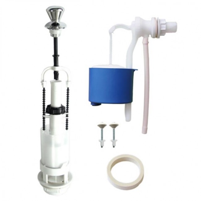 Количество в упаковке: 25шт. Комплект для керамических сливных бачков с выпускным клапаном ― тяга вверх и хромированной или пластиковой ручкой для спуска воды, боковым клапаном подачи воды, креплением и прокладкой между бачком к унитазом. Арматура регулируется по высоте. Наполнение бачка регулируется поплавком наполнительного клапана.