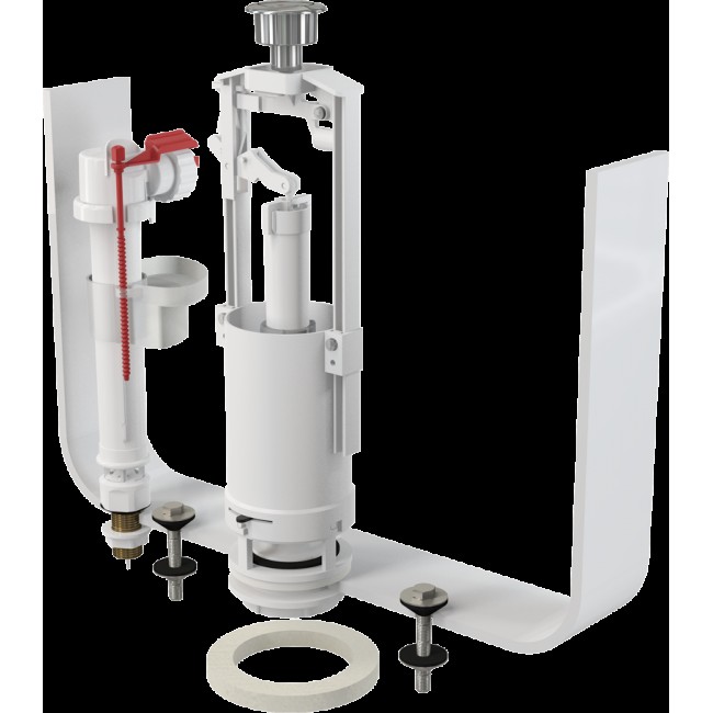 Универсальный механизм для керамического бачка. Подходит для замены существующего механизма похожего назначения. Конструкция позволяет регулировать высоту механизма в зависимости от высоты бачка.