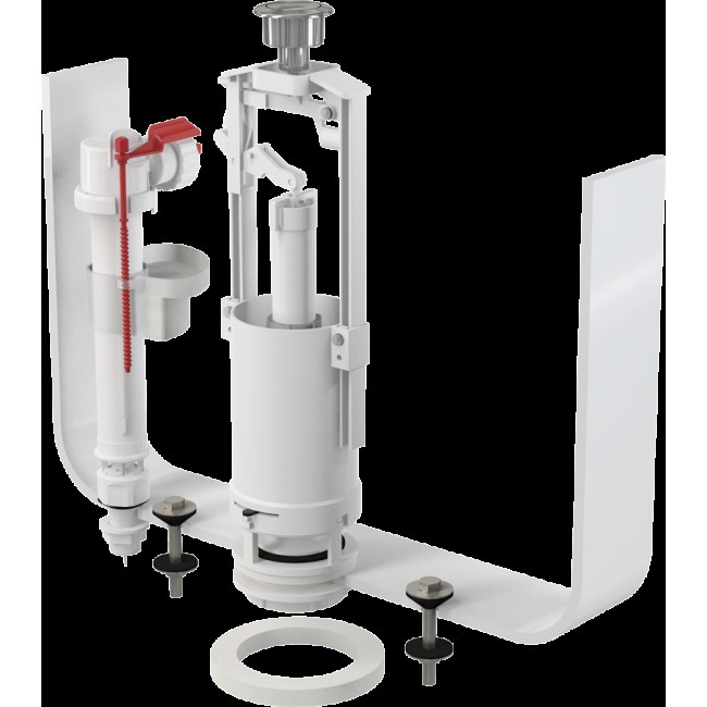 Универсальный механизм для керамического бачка. Подходит для замены существующего механизма похожего назначения. Конструкция позволяет регулировать высоту механизма в зависимости от высоты бачка.
