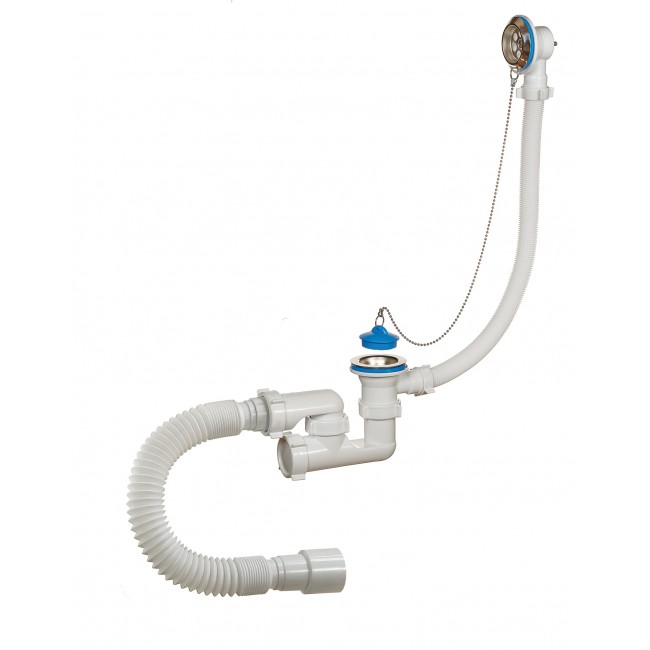 Сифон для ванны 1 1/2" * 40, регулируемый, с переливом и гибкой трубой А-80089 Орио