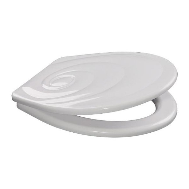 Крышка для унитаза, классической формы с креплением (ККУ-1), которое позволяет регулировать его по длине, разной цветовой гаммы. Рельеф самой крышкой в виде улитки.