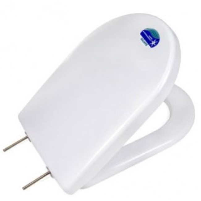 Сиденье состоит из крышки и ободка. Конструкция подходит для большинства унитазов российского и зарубежного производства. Благодаря антибактериальным добавкам изделие предотвращает распространение вредных микроорганизмов.