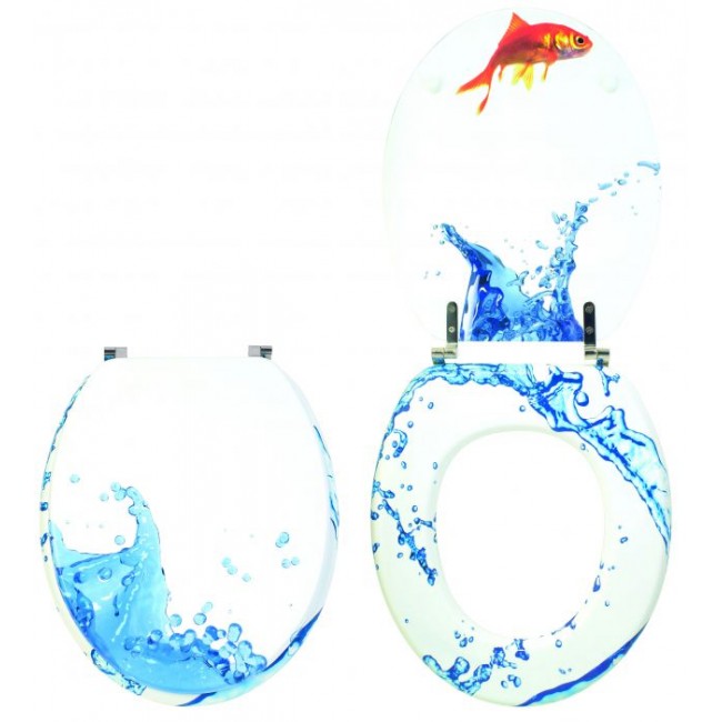 Сиденье для унитаза Аквариум, МДФ дизайн, крепления нержавеющая сталь Wirquin