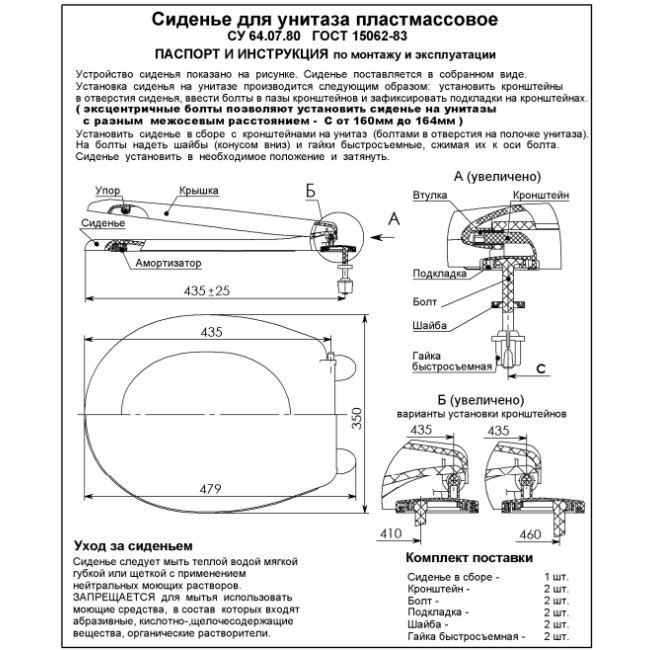 Сиденье состоит из крышки и ободка. Благодаря антибактериальным добавкам изделие предотвращает распространение вредных микроорганизмов.