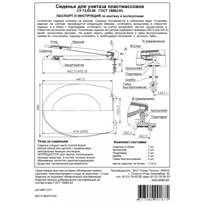 | Быстросъёмное сиденье (Clip Up) | Нет |