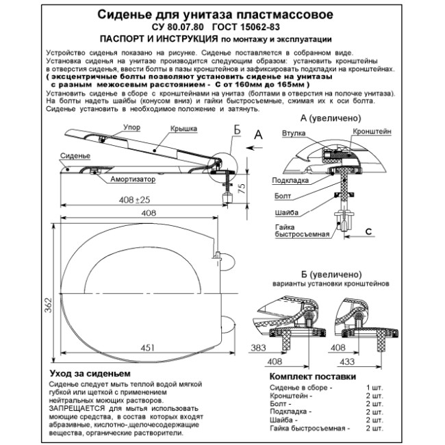 Сиденье состоит из крышки и ободка. Благодаря антибактериальным добавкам изделие предотвращает распространение вредных микроорганизмов.