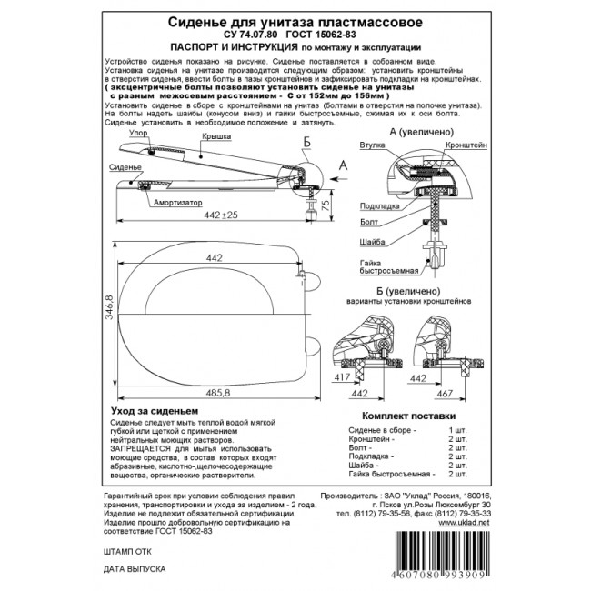 | Быстросъёмное сиденье (Clip Up) | Нет |
