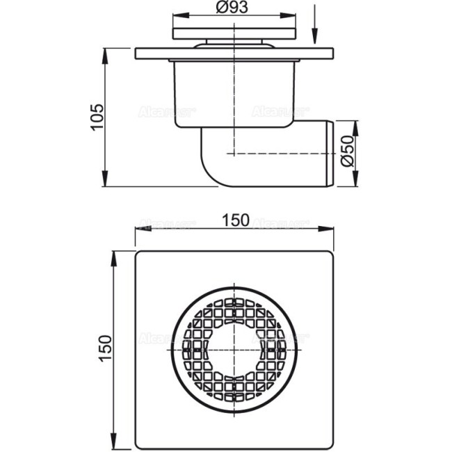 Сливной трап 150x150/50мм с бококовым подводом, пластик