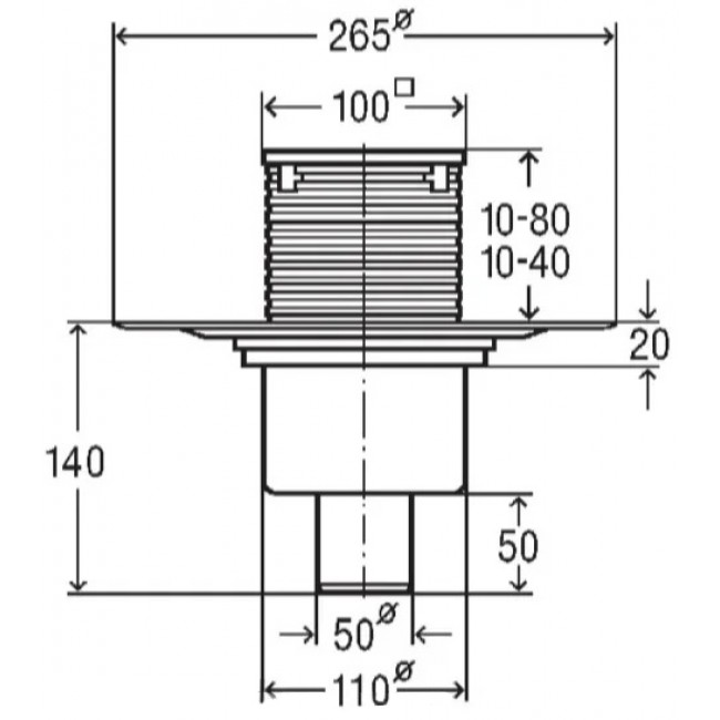 Трап для душа 50 вертикальный с сухим затвором 10*10 BAD661001 TIM