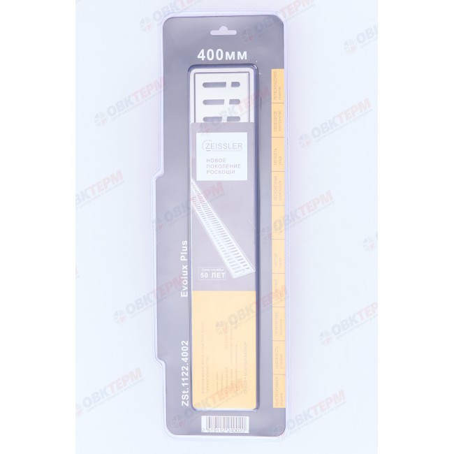 Трап линейный сливной для душа ZEISSLER имеет сухой и гидрозатвор, горизонтальный выход с фланцем свободного вращения. Лоток модели Zeissler Evolux Plus ZSt.1122.4002 выполнен в одном корпусе с гидрозатвором, благодаря чему достигается герметичность изделия и создается надежный барьер против запахов из системы канализации. - Тип канала: линейный