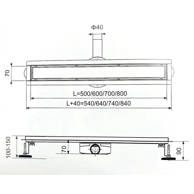 Трап-лоток 50 см под кладку плитки черный сухой + гидрозатвор BAD555002BK TIM