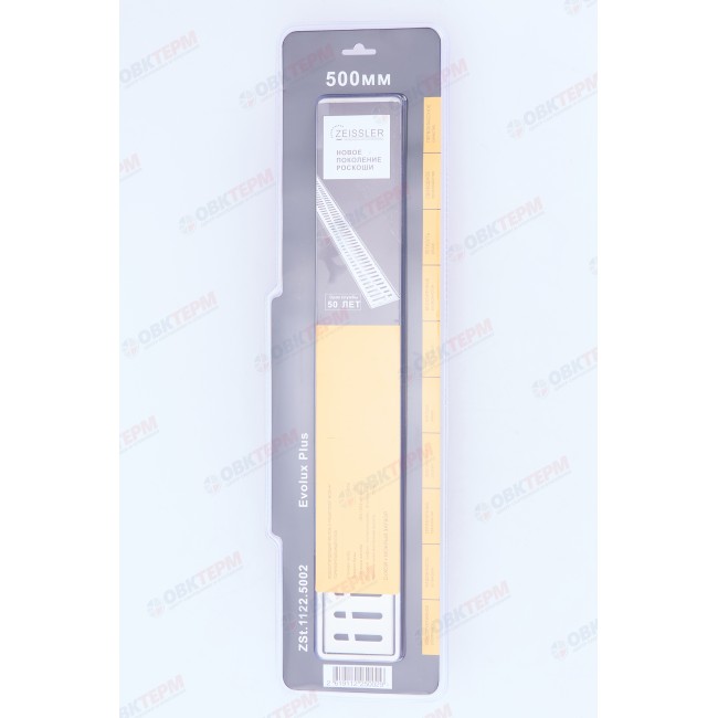 "Трап линейный сливной для душа ZEISSLER имеет сухой и гидрозатвор, горизонтальный выход с фланцем свободного вращения. Лоток модели Zeissler Evolux Plus ZSt.1122.5002 выполнен в одном корпусе с гидрозатвором, благодаря чему достигается герметичность изделия и создается надежный барьер против запахов из системы канализации. - Тип канала: линейный