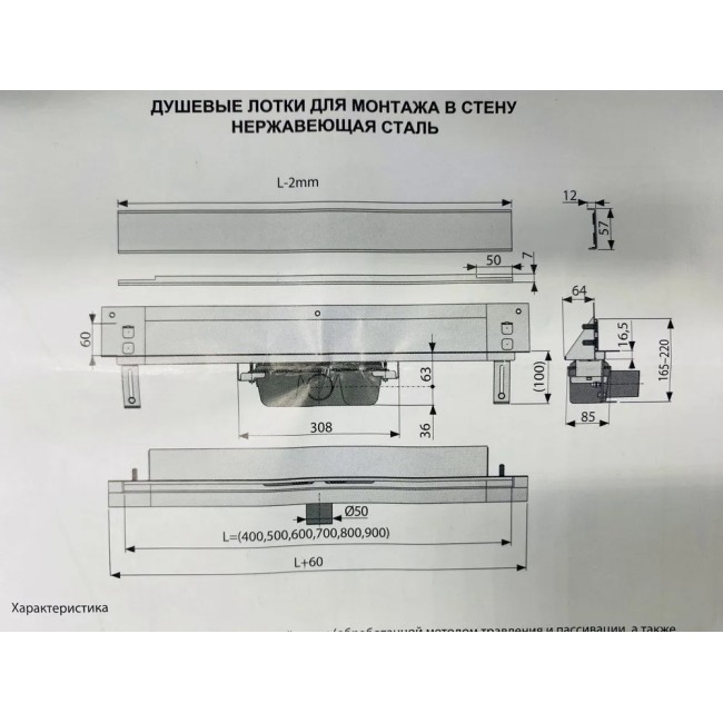 Душевой трап для монтажа в стену, предназначен для отвода воды с пола или поддона под душем.