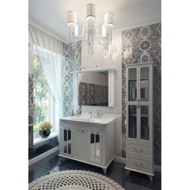Giovanni-один из самых раскошных комплектов мебели для ванной комнаты. Он станет настоящим украшением интерьера. Витражные стекла, белоснежный цвет, изящная фрезеровка-это определенное исключение из правил повседневности.