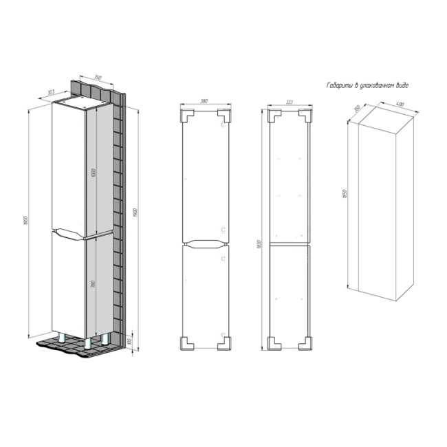| Комплектация | Шкаф-пенал; Паспорт изделия; Ножки - 4 шт. |