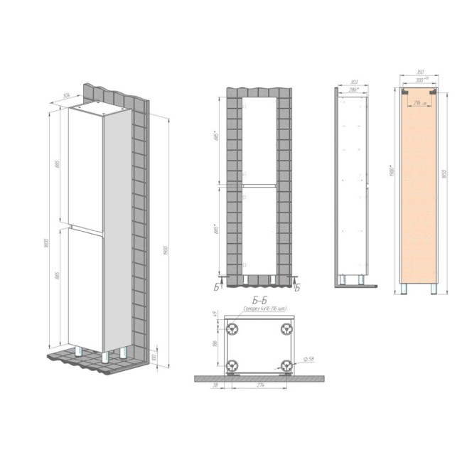 | Комплектация | Шкаф-пенал; Паспорт изделия; Ножки - 4 шт. |