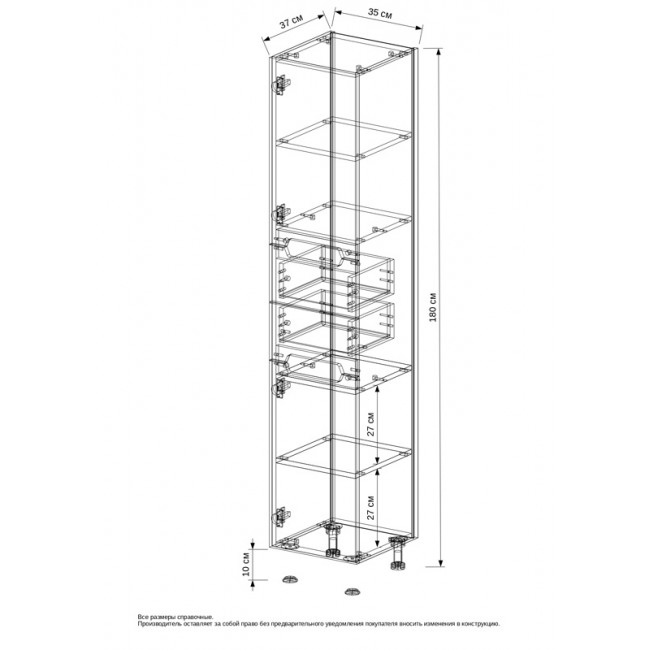 | Комплектация | Шкаф-пенал; Паспорт изделия; Ножки - 4 шт. |