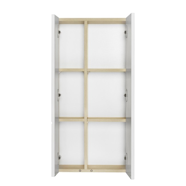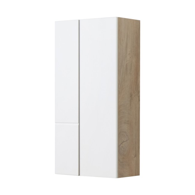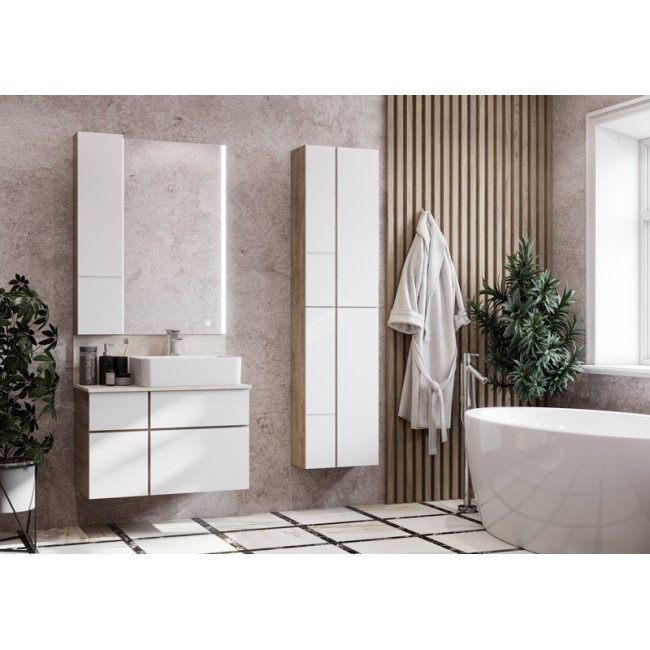 Дополняет коллекцию Мишель удобный шкафчик. При желании из двух шкафчиков можно составить вместительную шкаф-колонну. Все фасады оснащены системой открывания push-to-open. Дизайн шкафчика повторяет тумбу-умывальник: фасады в матовой пленке белый софт сочетаются с корпусом в декоре дуб эндгрейн.