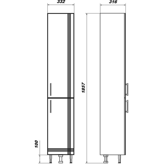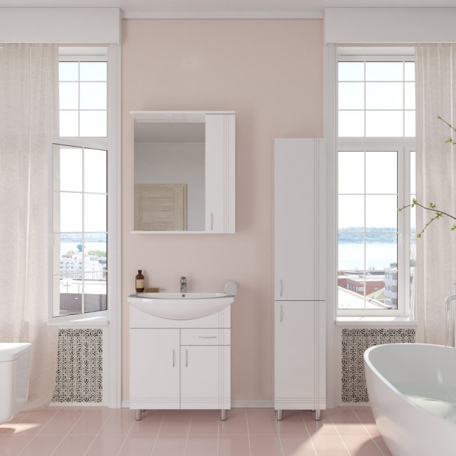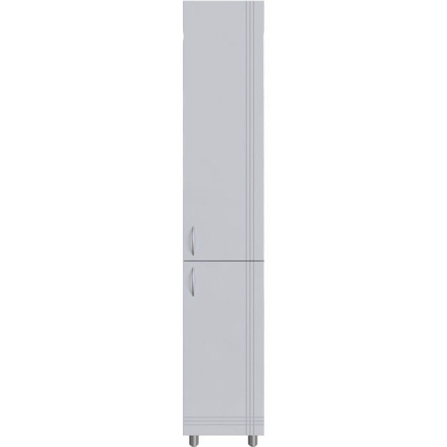 Шкаф-пенал San Star Вольга Корпус изготовлен из ЛДСП, фасад - из МДФ с покрытием пленкой ПВХ. устойчивы к влаге и перепадам температур. Фактура: глянец. Фасад декорирован фрезеровкой. Фурнитура цвета хром. Монтаж: на ножках, предусмотрено крепление к стене. Габариты (ГШВ): 31.6x33.2x185.7 см. Две распашные дверки с доводчиками, открытая ниша для хранения аксессуаров.