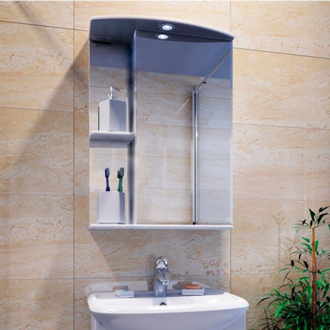 Шкаф-Зеркало Николь 50/с белый, со светильником Flamenco