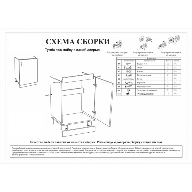 | Комплектация | Тумба разборная; Комплект ножек; Комплект креплений; Комплект ручек; Паспорт изделия. |