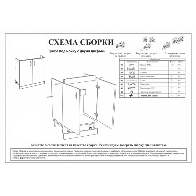 | Комплектация | Тумба разборная; Комплект ножек; Комплект креплений; Комплект ручек; Паспорт изделия. |