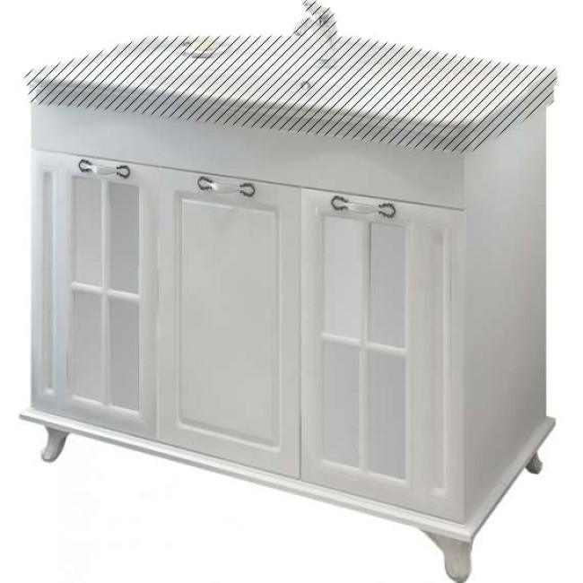 БЕЗ УМЫВАЛЬНИКА. Giovanni-один из самых роскошных комплектов мебели для ванной комнаты. Он станет настоящим украшением интерьера. Витражные стекла, белоснежный цвет, изящная фрезеровка-это определенное исключение из правил повседневности.