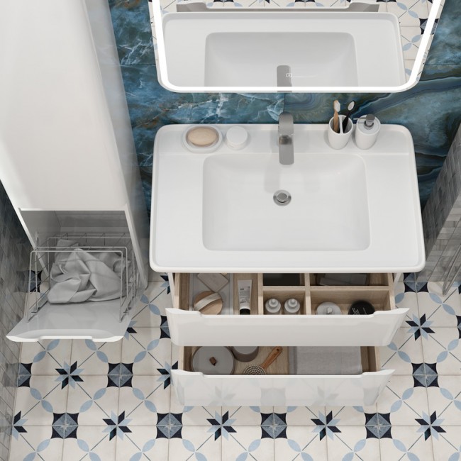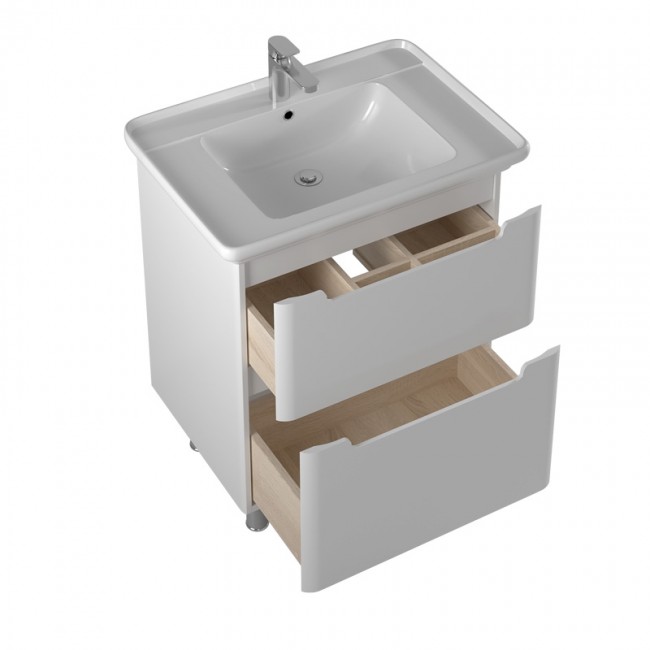 БЕЗ УМЫВАЛЬНИКА. Коллекция Альби – сочетает в себе изящные линии и строгий выдержанный стиль. Минимум лишнего, максимум комфорта. Скрытые прямые ручки и умывальник прямоугольной формы элегантно и качественно дополняют общую композицию. Два выдвижных ящика, оснащены тандемами частичного выдвижения с системой плавного и бесшумного закрывания BLUMOTION фирмы BLUM (Австрия)