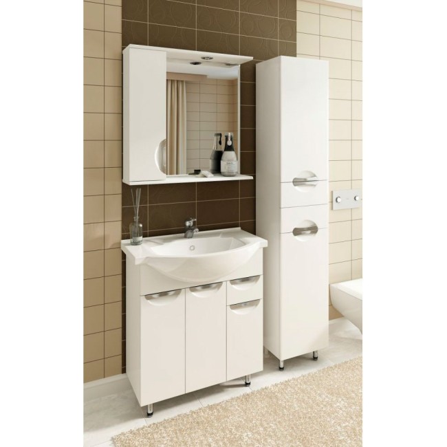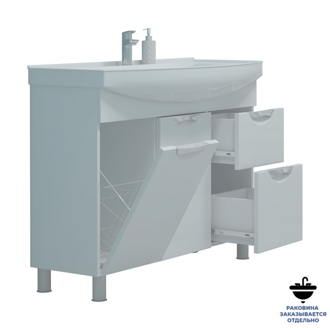 БЕЗ УМЫВАЛЬНИКА. Эргономичная тумба с тремя дверьми и одним ящиком. Тумба оснащена четырёхшарнирными самодоводящими петлями фирмы BOYARD, обеспечиващие плавное и бесшумное В тумбу встроена корзина для белья