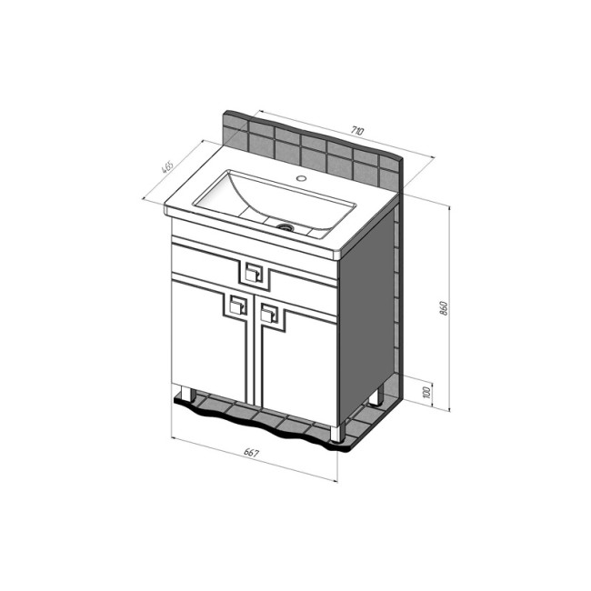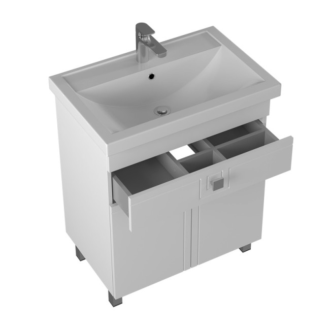 БЕЗ УМЫВАЛЬНИКА. Классическая привлекательность мебели для ванных комнат коллекции «Дакар классика» выходит на первый план. Строгие линии фасадов, стильная фрезеровка, не только подчеркивают красоту хромированных ручек, но и придавая мебели глянцевый блеск драгоценного покрытия. Эргономичная тумба с двумя дверьми и одиним ящик. Выдвижной ящиком оснащен тандемами частичного выдвижения с системой плавного и бесшумного закрывания Вlumotion фирмы Вlum (Австрия)