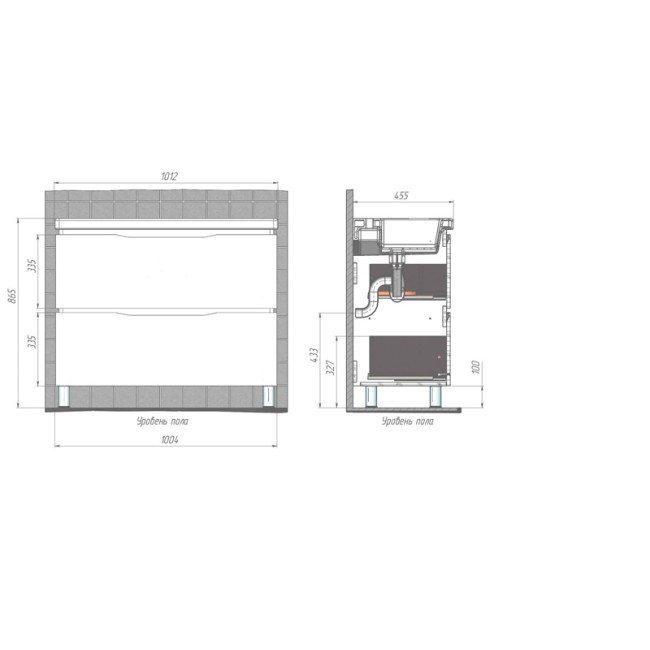 | Ширина без раковины, мм | 1004 |