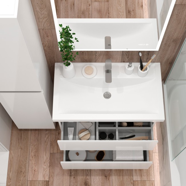 БЕЗ УМЫВАЛЬНИКА. Два выдвежных ящика, оснащены тандемами частичного выдвижения с системой плавного и бесшумного закрывания BLUMOTION фирмы BLUM (Австрия)