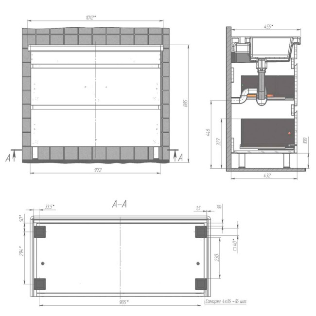 | Ширина без раковины, мм | 972 |