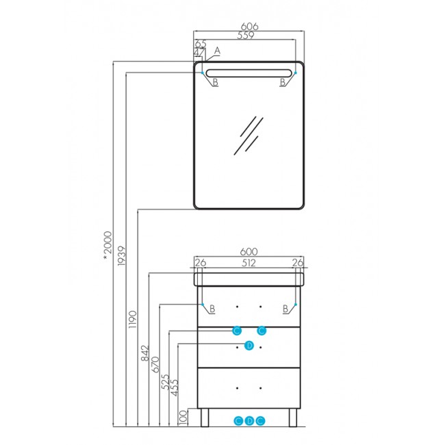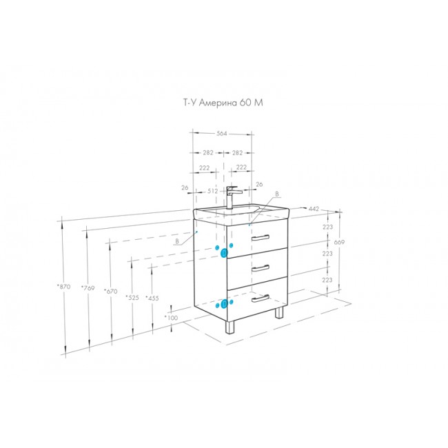 Тумба напольная 60 М Америна Белый (688 x 564 x 442) AQUATON