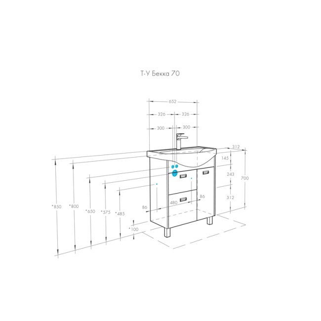 У тумбы размера 70 см слева расположены два ящика полного выдвижения, а справа - фасад-створка, петли с доводчиками. В комплект входит регулируемая по высоте полка. Тумбы установлены на металлические ножки и укомплектованы практичными врезными ручками, которые очень удобны в использовании. Боковые стенки и фигурная планка под раковиной изготовлены из ламинированной, текстурированной влагостойкой ЛДСП в цвете дуб сомерсет, а фасады - из крашеной в белый цвет влагостойкой ЛДСП.