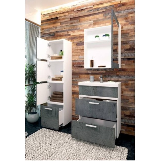БЕЗ УМЫВАЛЬНИКА. Изысканная коллекция "Oliver 60" наполнит Вашу ванную комнату теплым светом и уютом. Цвет коры дуба придаст натуральности интерьеру. Удобные выдвижные ящички помогут всегла соджеражать ванную комнату в порядке и чистоте.