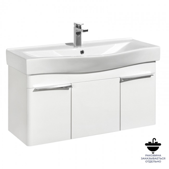 Тумба подвесная 100, Беверли 100 Белый глянец под умывальник Беверли 100 Aquaton