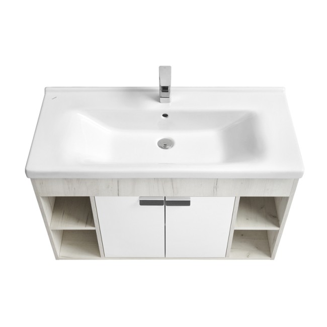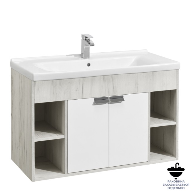 Тумба подвесная 100, Флай 100 Белый/Дуб крафт под умывальник Миранда 100 Aquaton