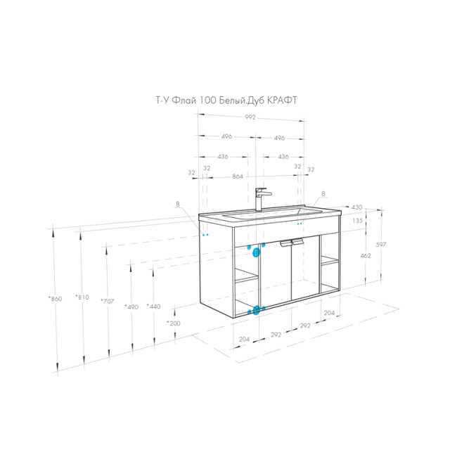 | Ширина без раковины, мм | 992 |