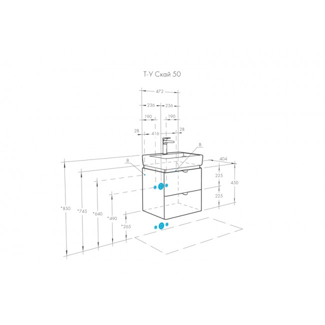 Тумба подвесная 50, Скай 50 Белый глянец под умывальник Нео 50 Aquaton