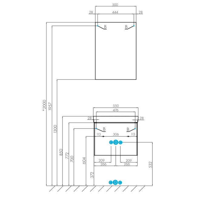 | Высота без раковины, мм | 400 |