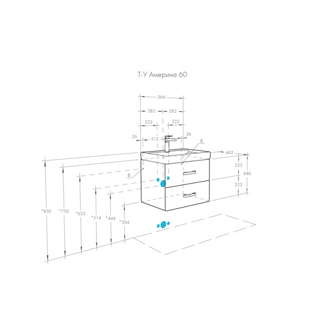 Тумба подвесная 60, Америна 60 белый под умывальник Тигода 60 Aquaton
