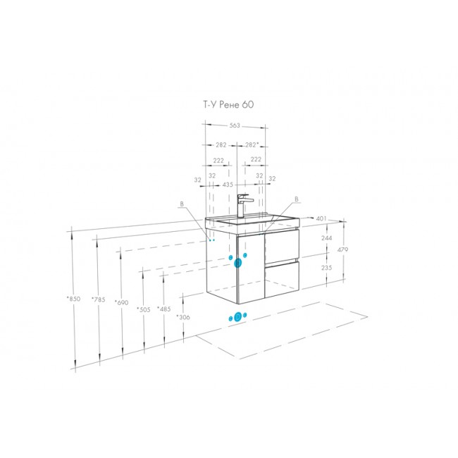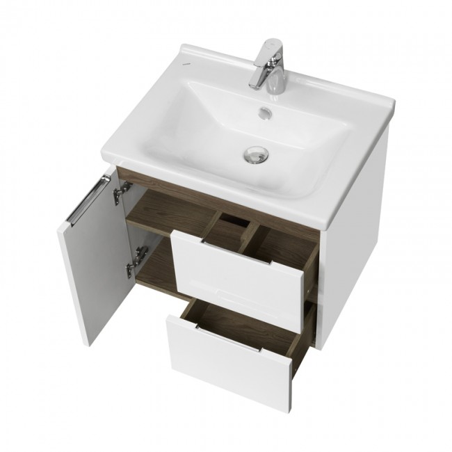 Тумба подвесная 60 Рене Белый/Грецкий орех (491 x 582 x 444) AQUATON